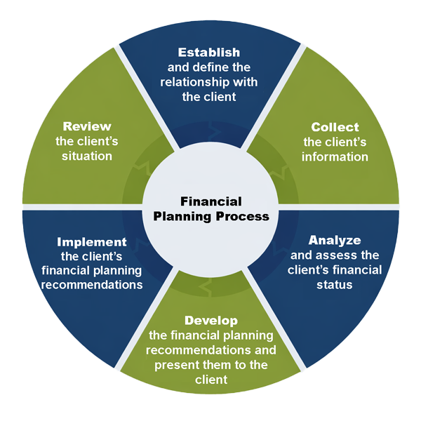 At My Money Mantrrah, we follow a structured and globally recognized approach inspired by Financial Planning Standards Board India to help you achieve your life goals with clarity and confidence.Our process is simple, transparent, and tailored to your unique financial journey.The six steps as per FPSB India are: